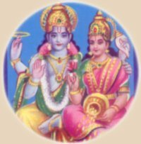 valour, offspring, success, luxurious life, eternal bliss. Vishnu and Lakshmi