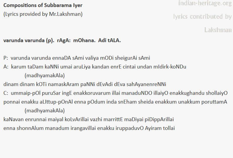 varunda varunda (p). rAgA: mOhana. Adi tALA. Subbarama Iyer.