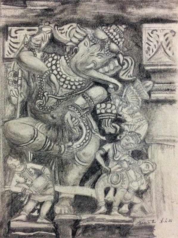 Pencil Sketch of Dancing Ganesha, Shamlaji, Gujarat by Sumathi