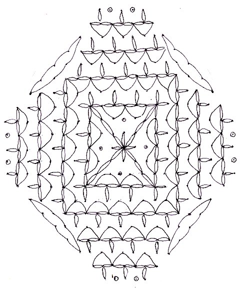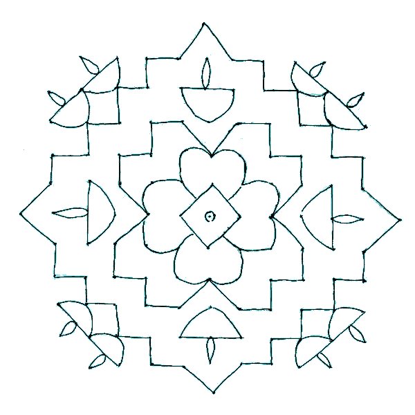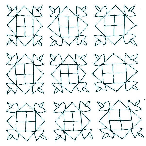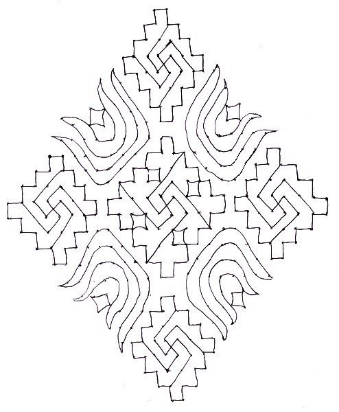 All these kolams are from her collection of kolams - from her kolam notebook. They have been mostly drawn from magazines for her reference.