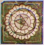 *  Kali Yantra - The encompassing circle is avidya (ignorance); the eight petalled lotus is the eight-fold Prakriti consisting of earth, water, fire, air, ether, manas (mind), buddhi (intellect) and ahamkara (egoism); the five triangles are the five jnanendriyas (jnana - knowledge; indriyas - senses), the five karmendriyas (motor organs) and the five pranas (breathing activities); and the bindu which is pure consciousness reflected in maya in the bija.