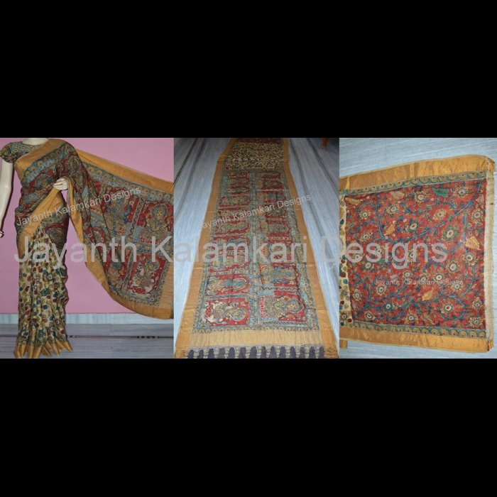 Manufacturer and wholesaler of pure vegetable print kalamkari sarees, fabrics, dress materials, kurtis, patch work kurtis and sarees, shawls, bedsheets, table cloths, door curtains, wall panels - non chemical and easy to maintain, long lasting and color fast.