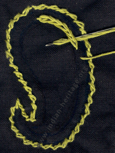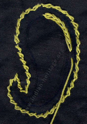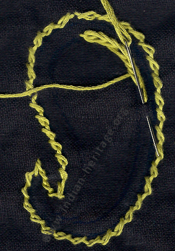 An outer line of twisted chain stitch. Heavy chain stitch in the inner line