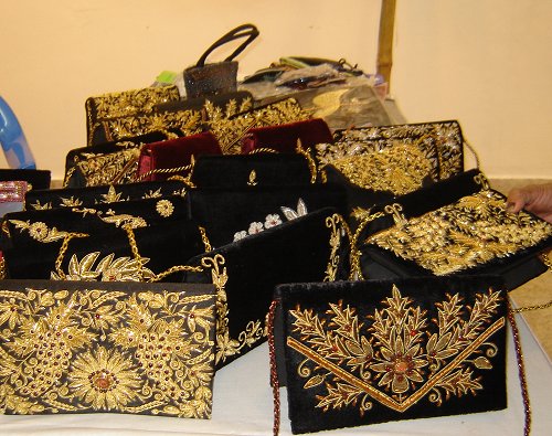 Zari embroidered bags and panels from Agra by Sameer, Hafiz Bhai