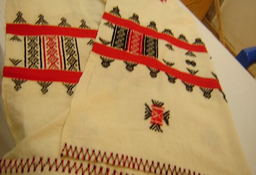women embroider the 'poothkulli' or long wrap worn in Greek fashion by