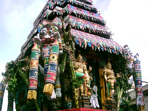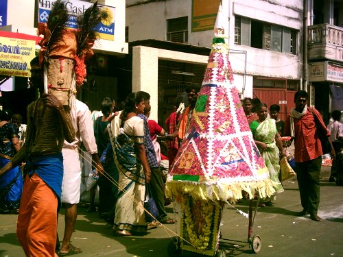 streets as a welcome to the Lord & his devotees, carrying kavadi &