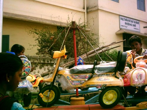 for the children to enjoy, vendors with their colourful wares (pottery,
