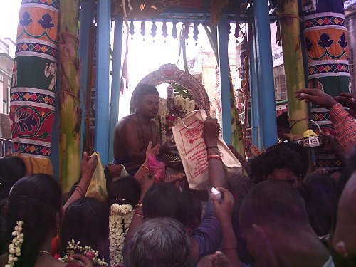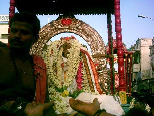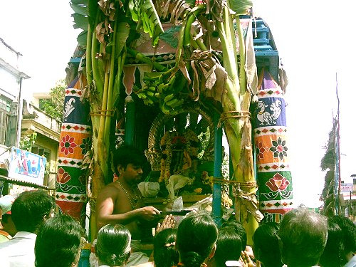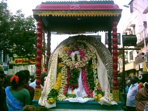 the evening procession, Kapaleeswarar as Bikshaadanar had a begging bowl
