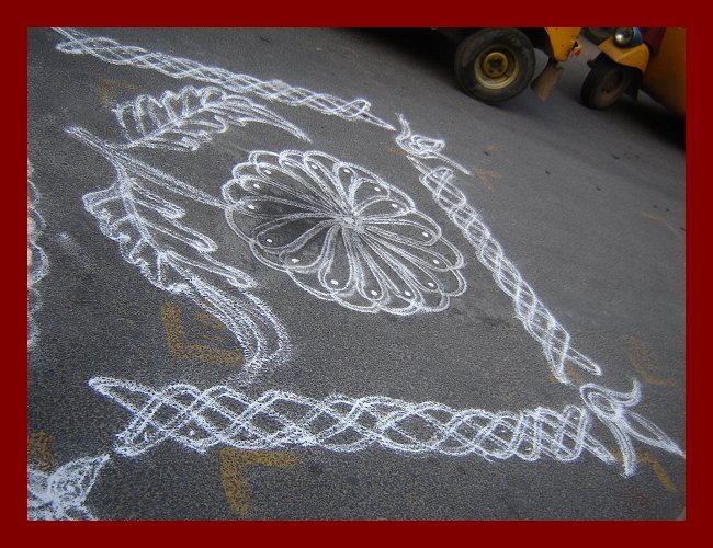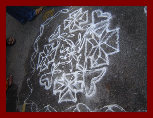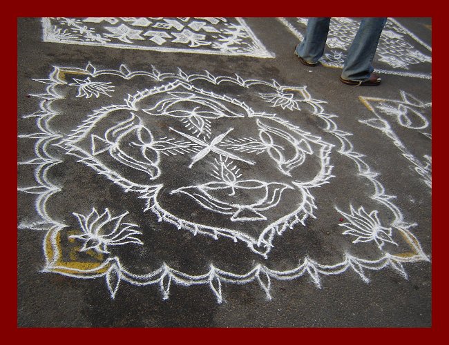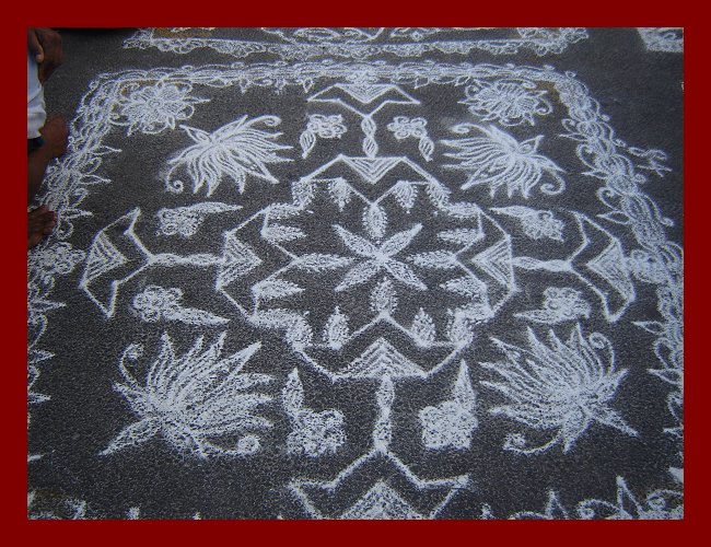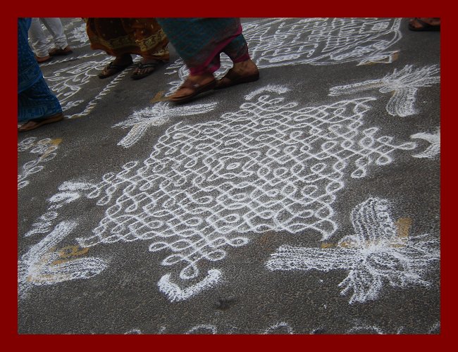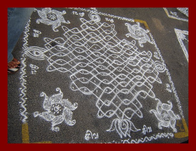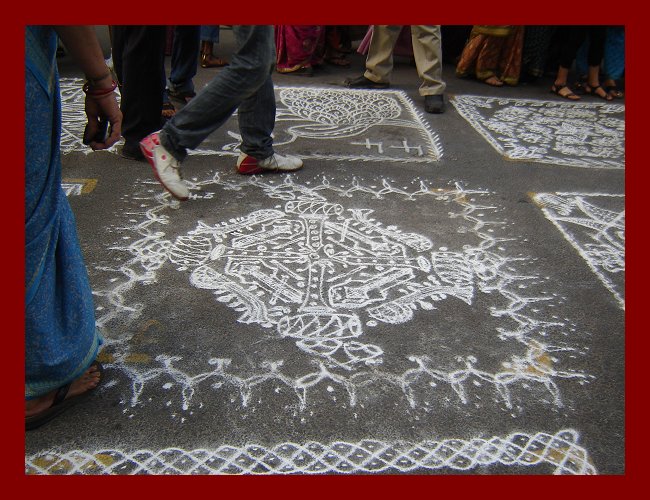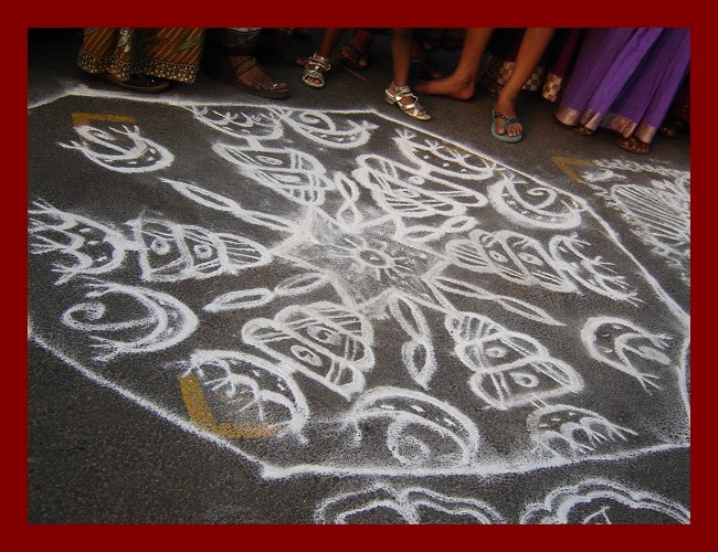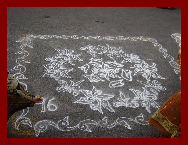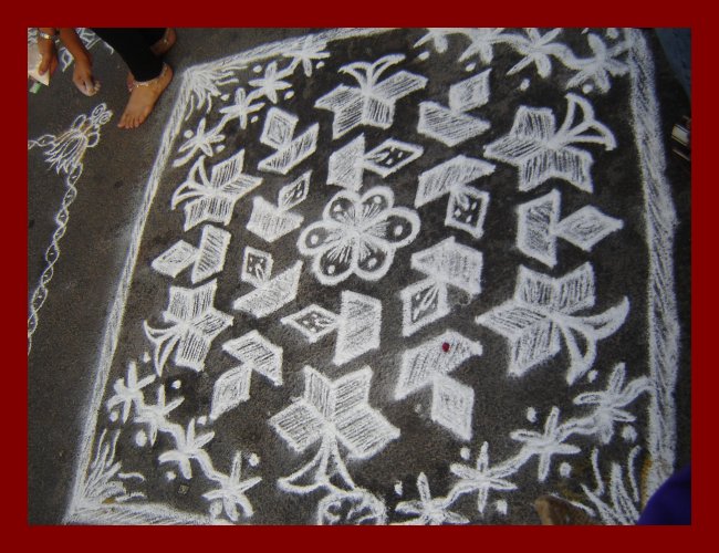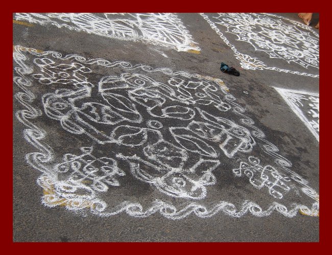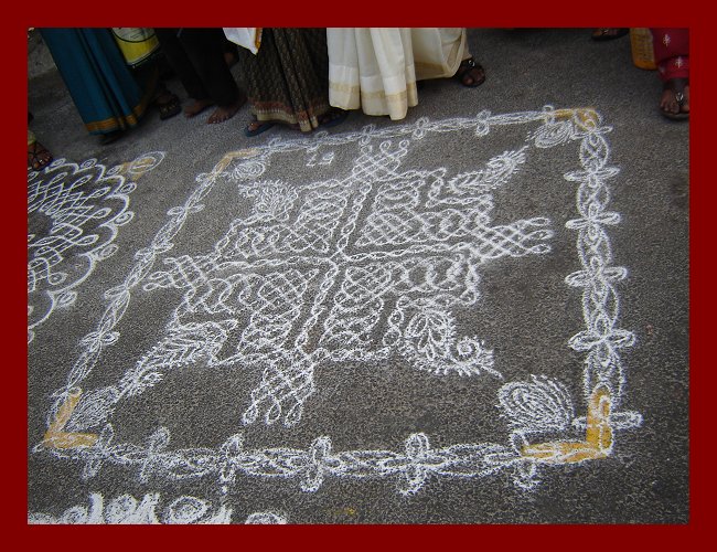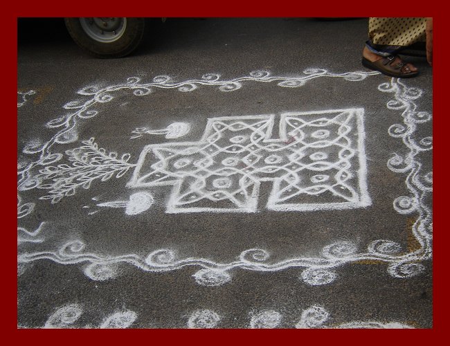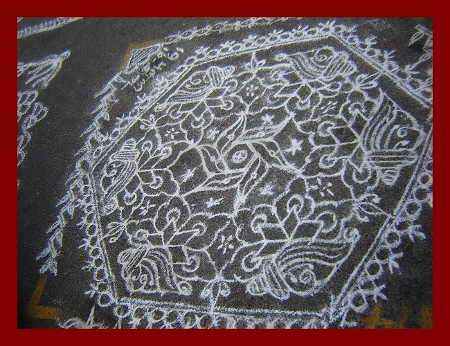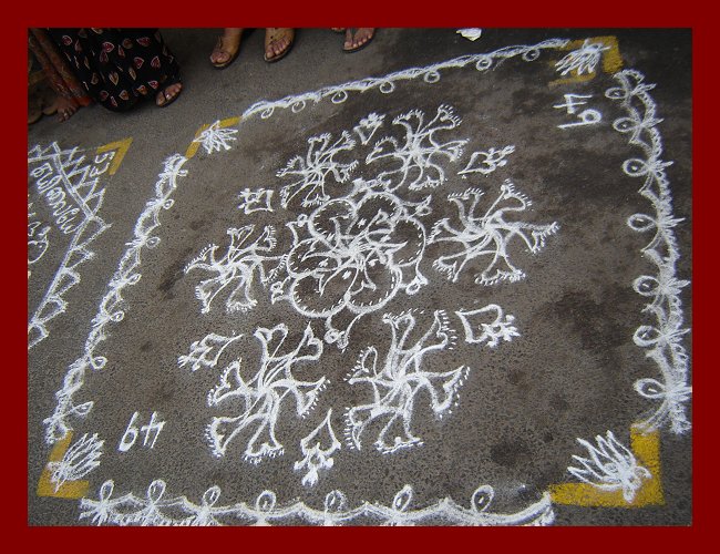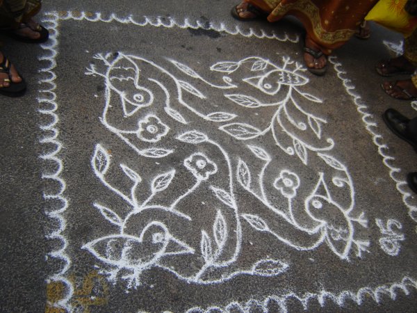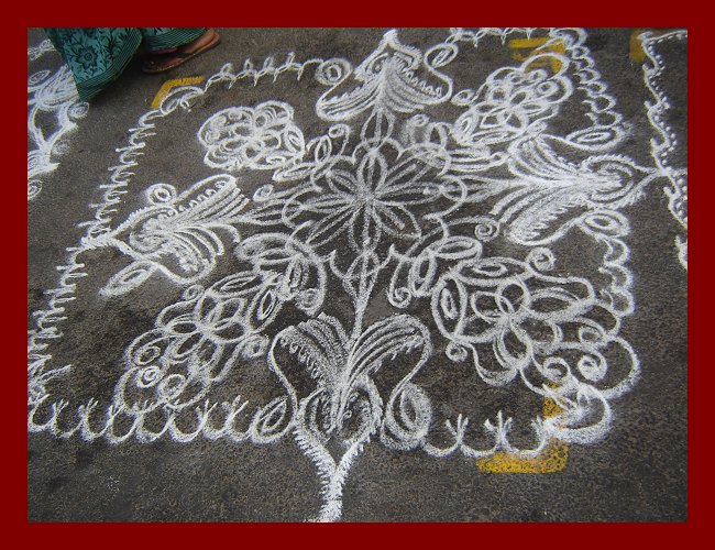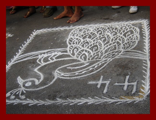 kolams to floral, animal, bird designs. There were several peacocks, annam,