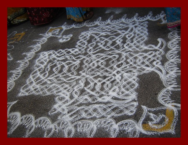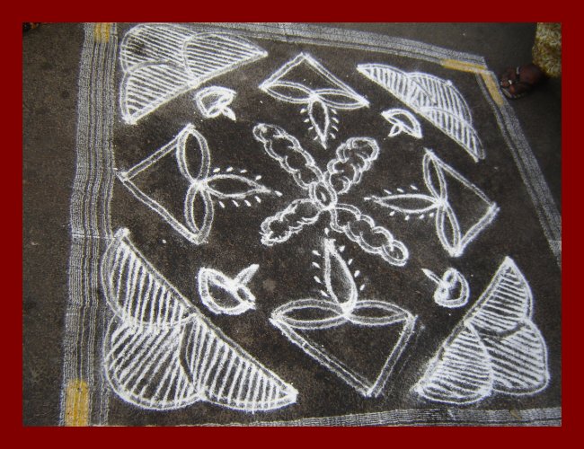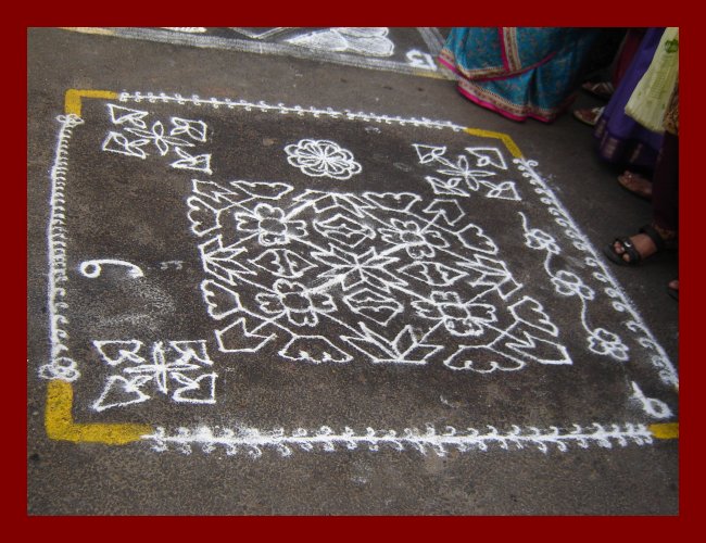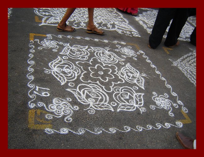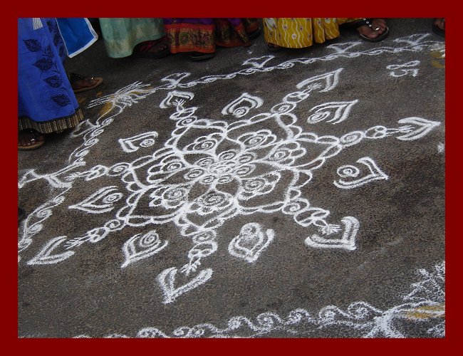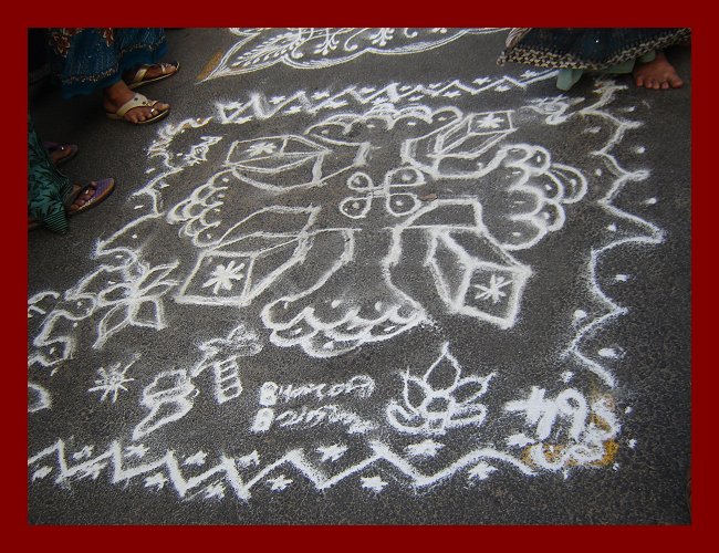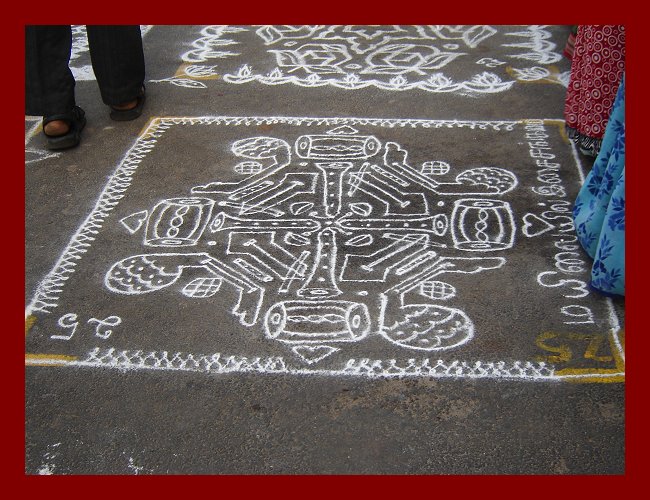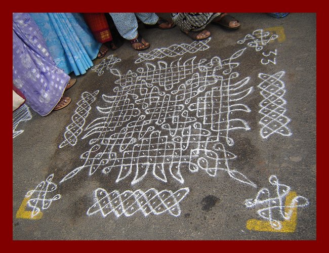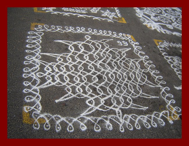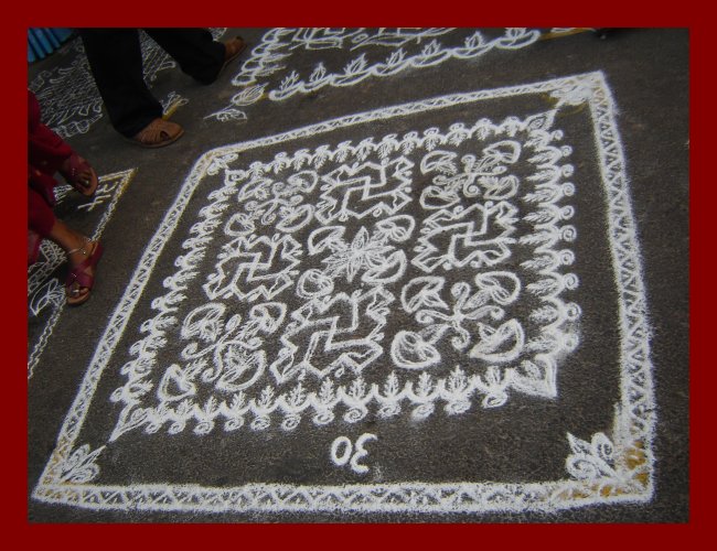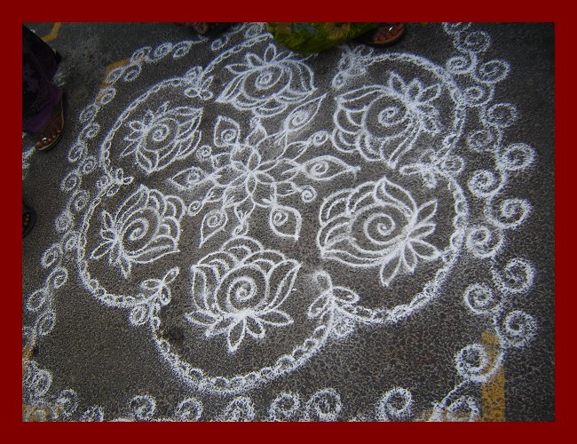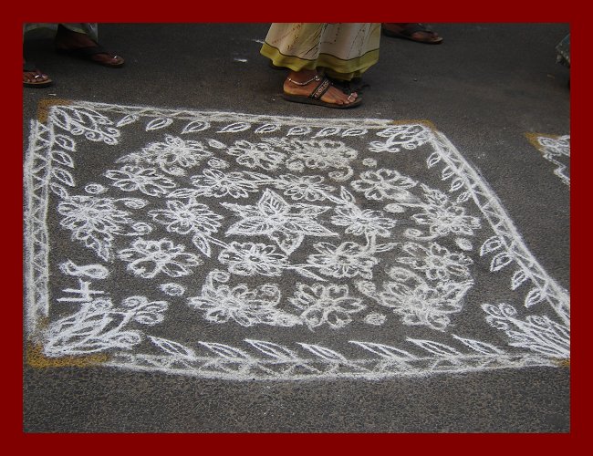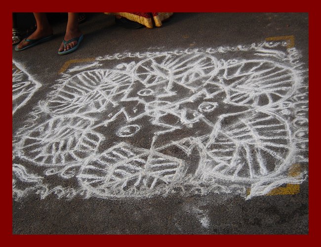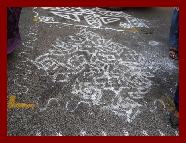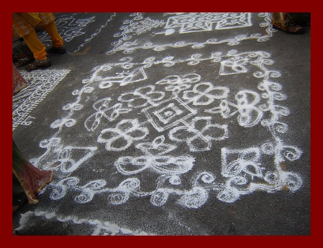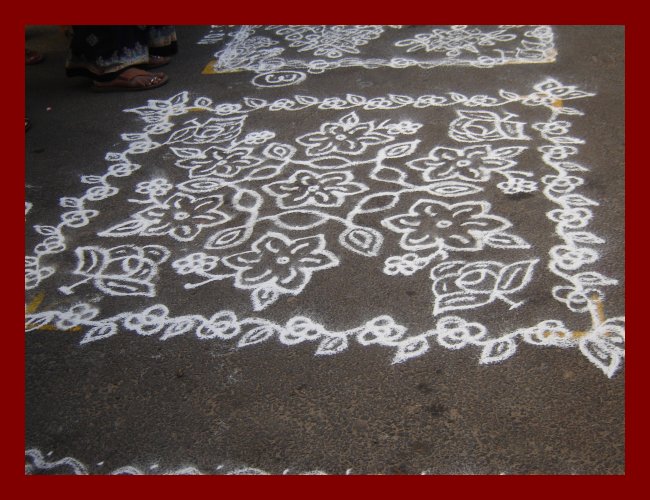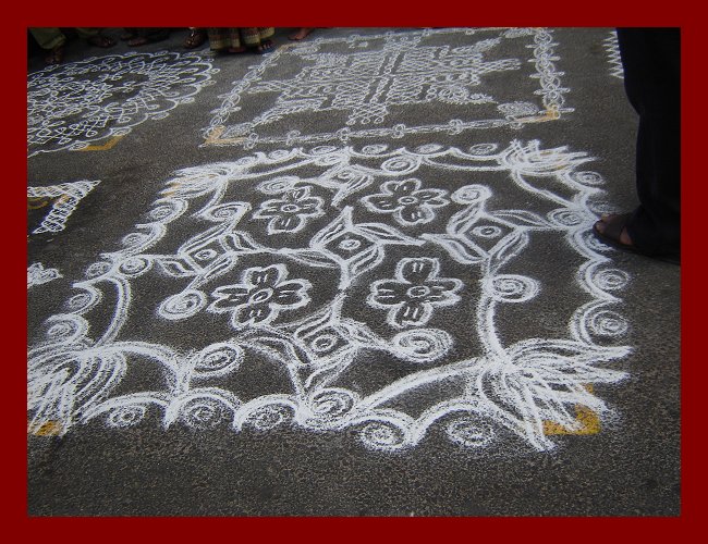 kolams to floral, animal, bird designs. There were several peacocks, annam,
