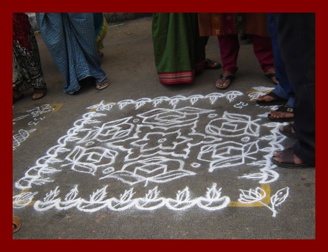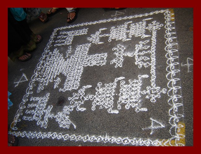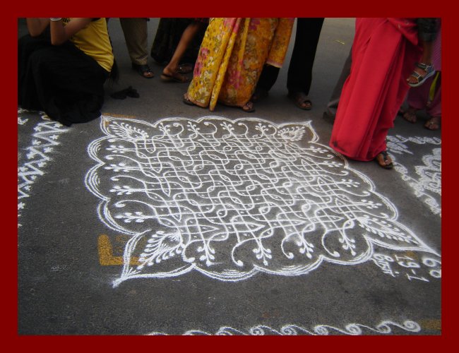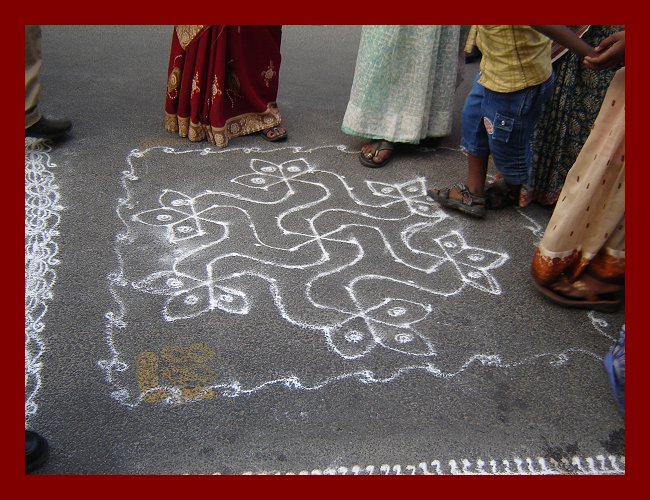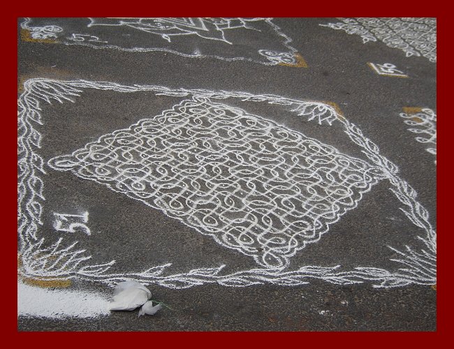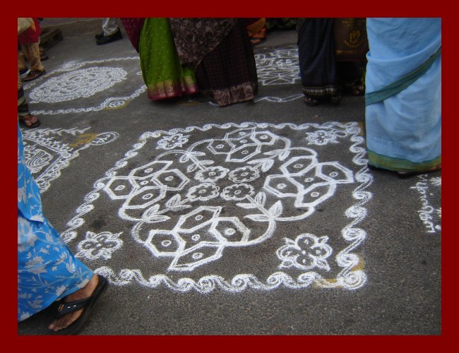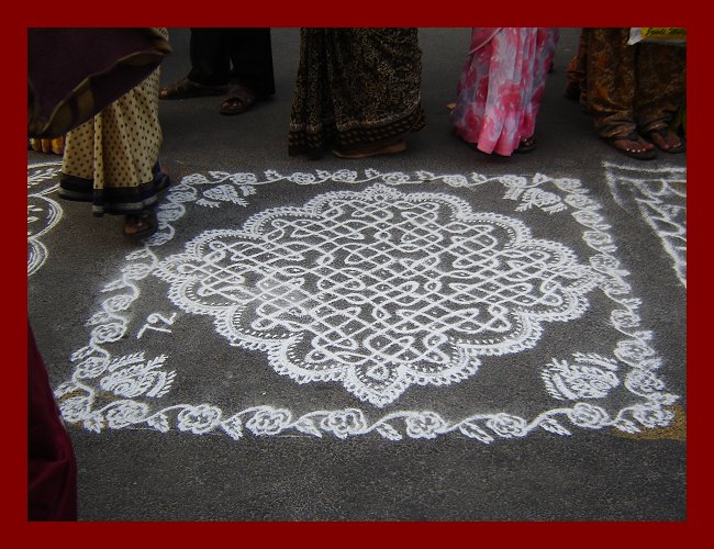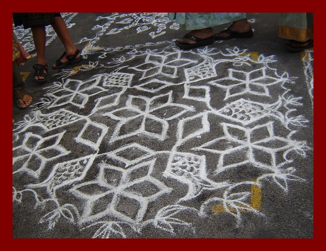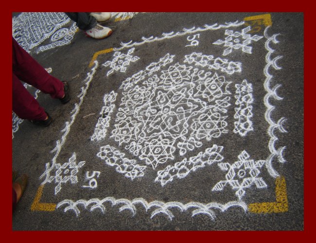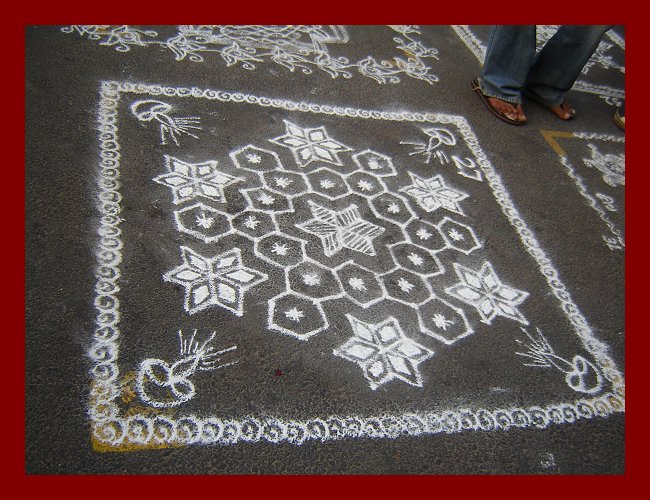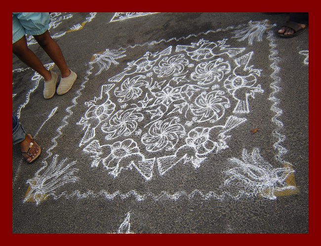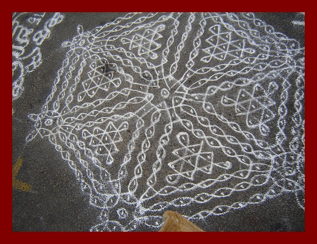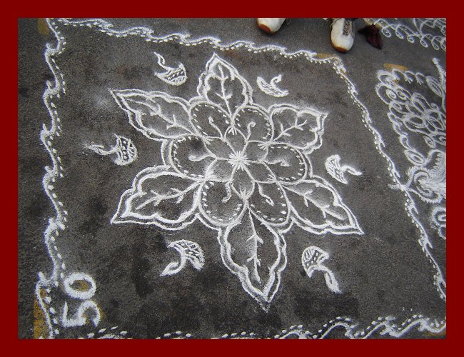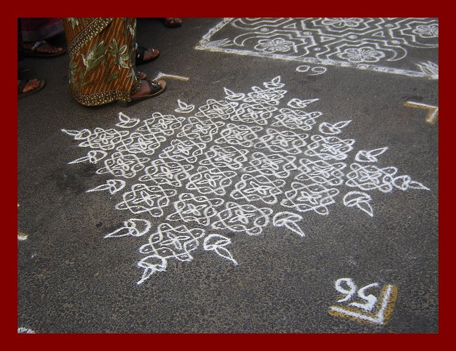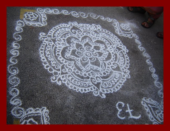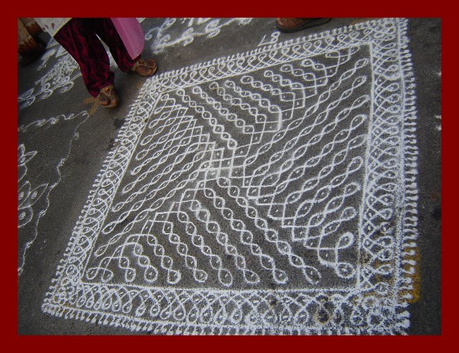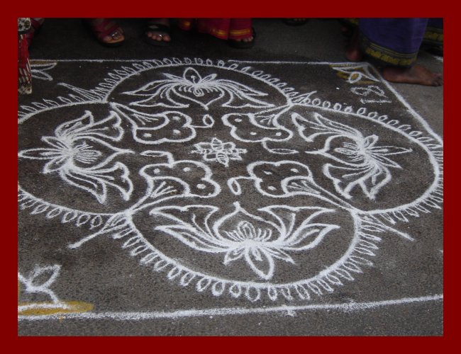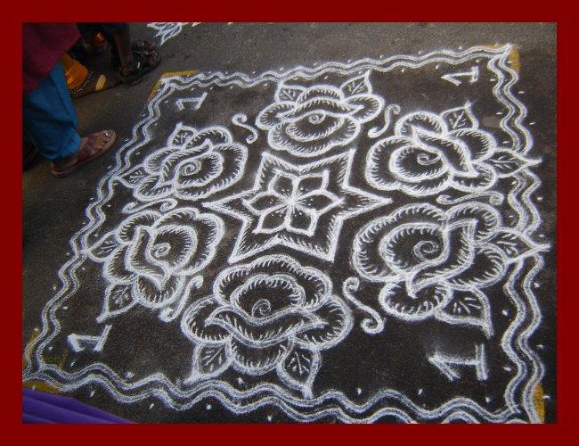 kolams to floral, animal, bird designs. There were several peacocks, annam,