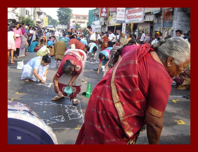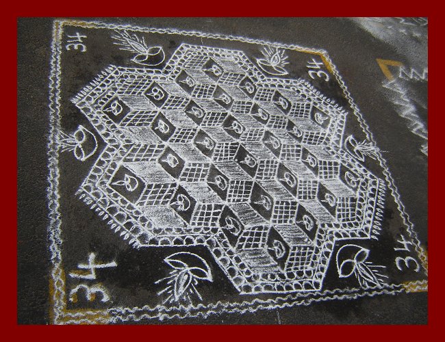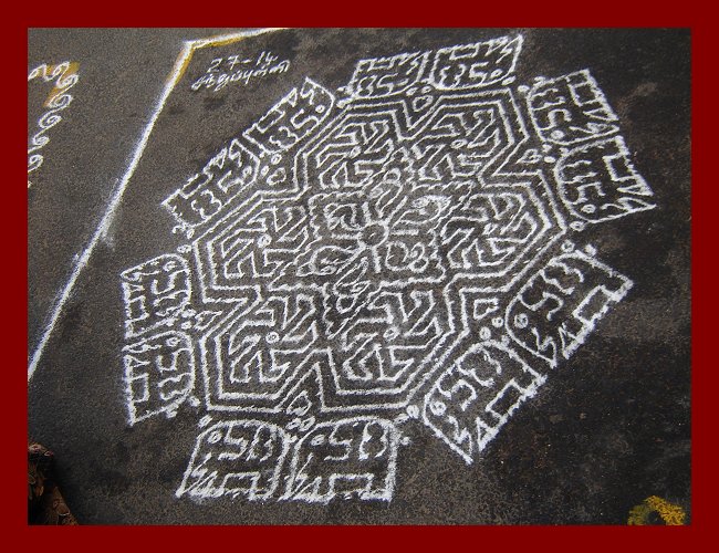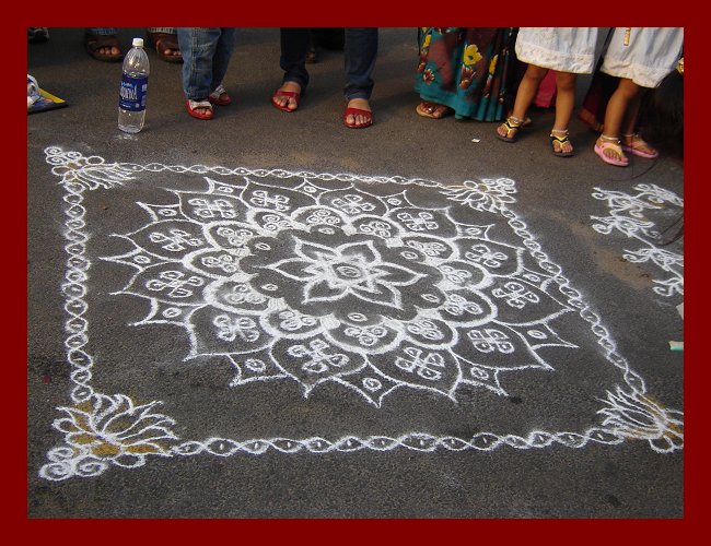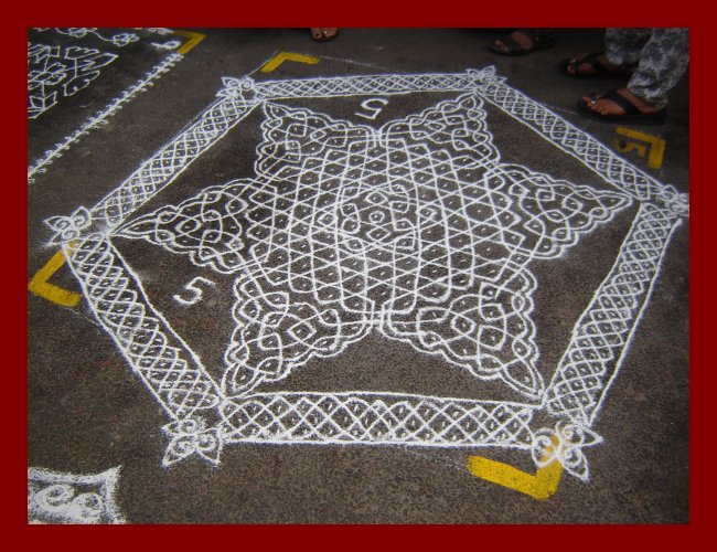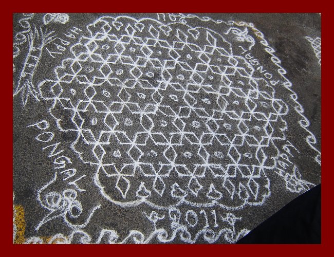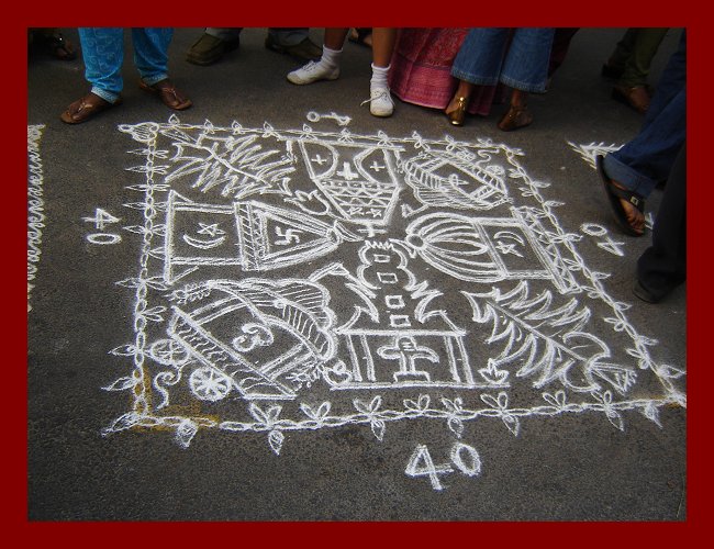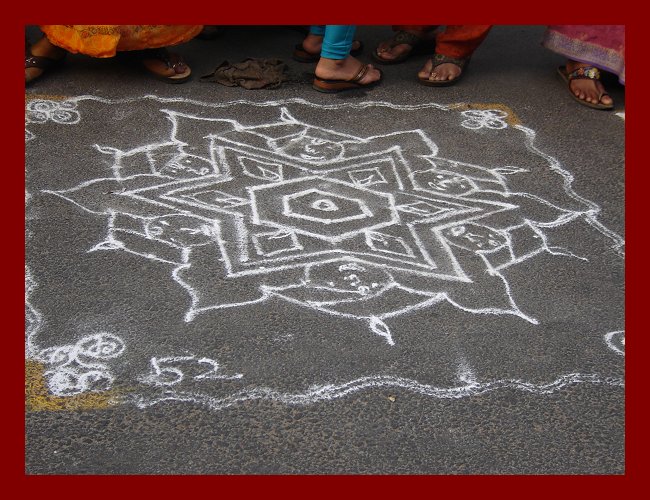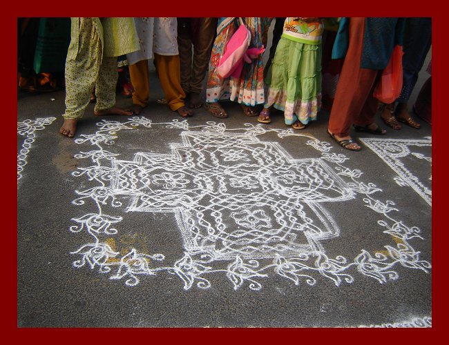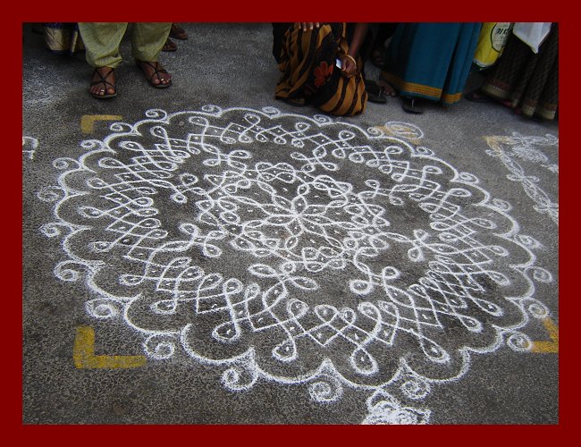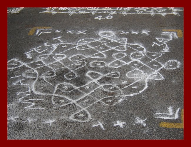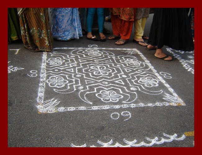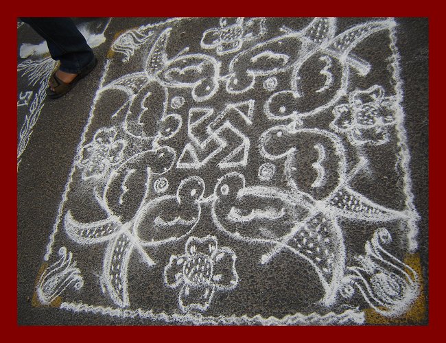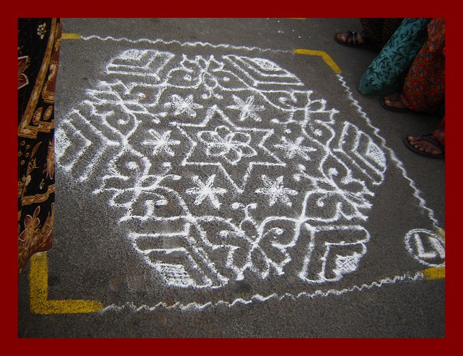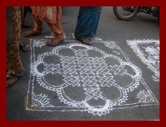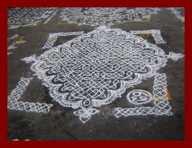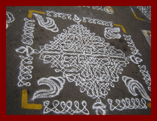 kolams to floral, animal, bird designs. There were several peacocks, annam,