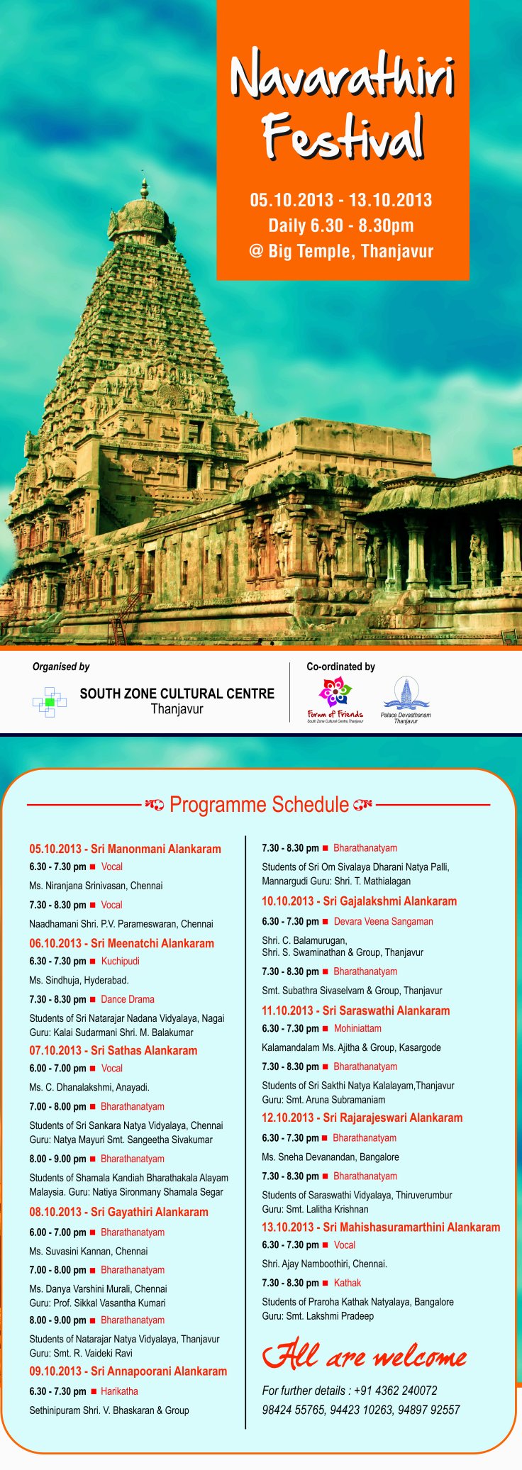 organized by The South Zone Cultural Centre, Thanjavu, assisted by the