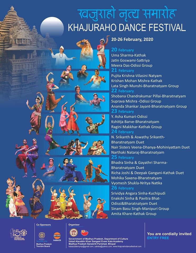 Bharatanatyam - Kalamandalam Sarojini, Mohiniattam - Vinitha Nedungadi, Ottenthullal - Kalamandalam Parameswaran, Chakyarkoothu - Kalamandalam Jishnu Prathap, Koodiyattom - Margi Ramachakyar, Thayambaka - Porur Haridas