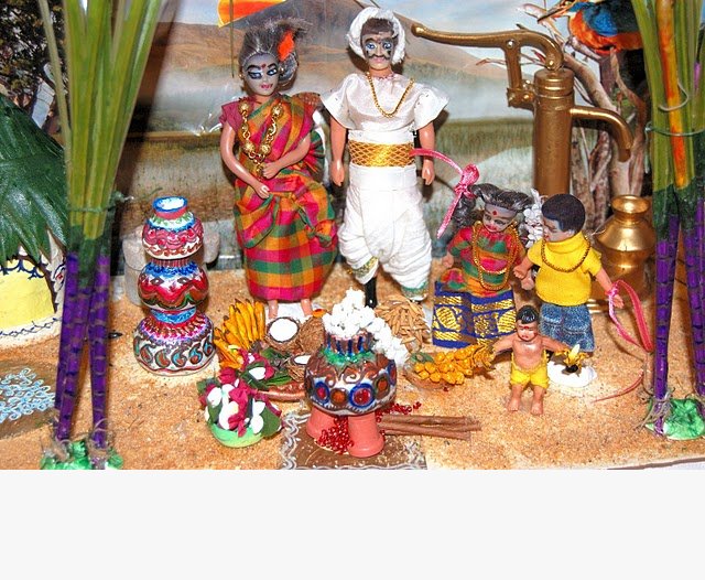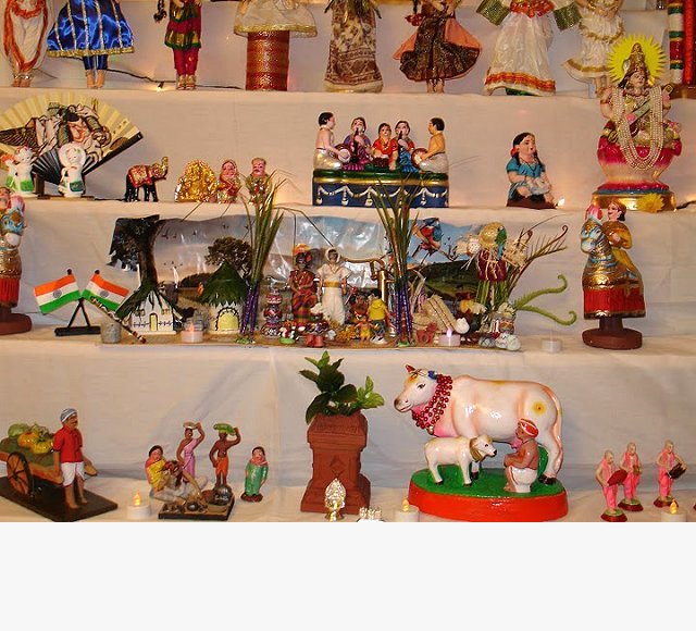 The theme of golu (2010) was brides of India celebrating diwali, 8 classical dances of India, and Pongal.