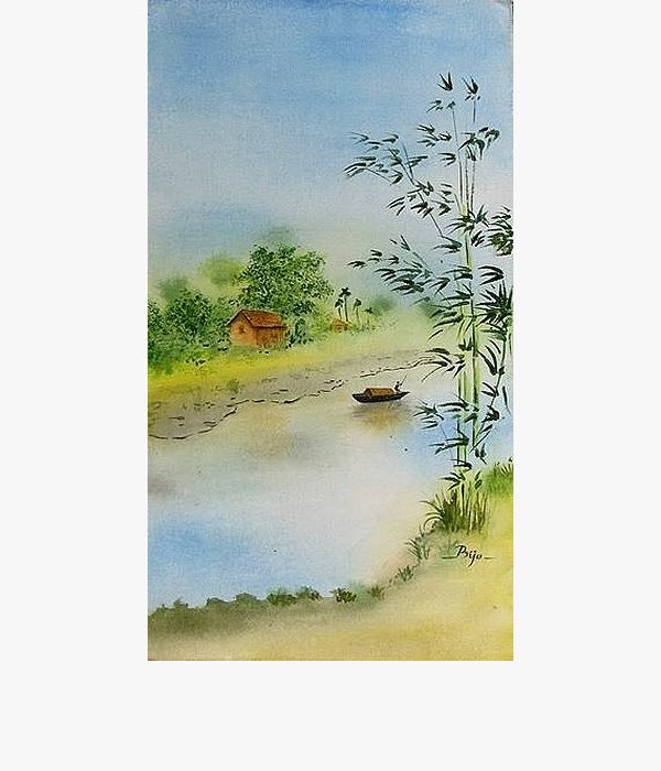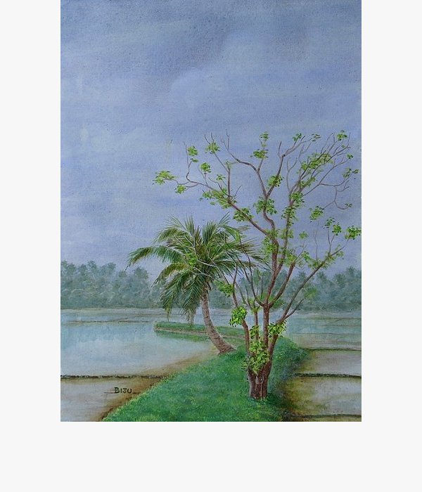 Kuttanad Landscape, Acrylic on Acid Free paper by Biju Mathew