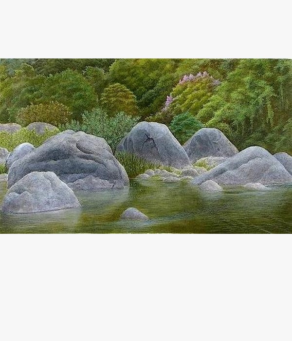 River and Rocks, 24.5X14.5 inches, Acrylic on Custom Made Canvas by Biju Mathew