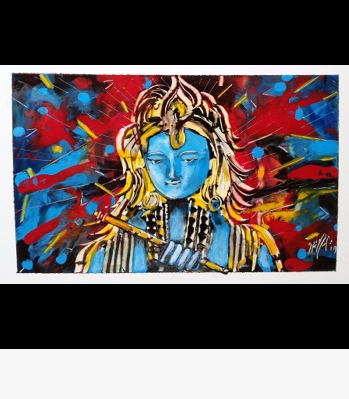 He paints on paper, wall, glass etc. merely with his fingers and nails.