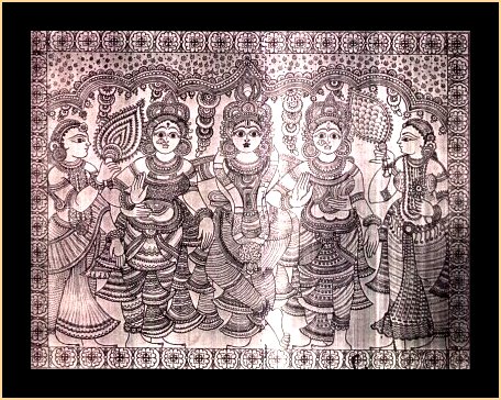 of scenes from Hindu mythology. Figures of deities with rich border embellishments