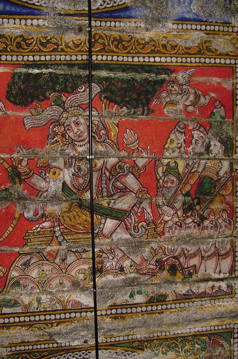 Murals on temple walls and ceilings