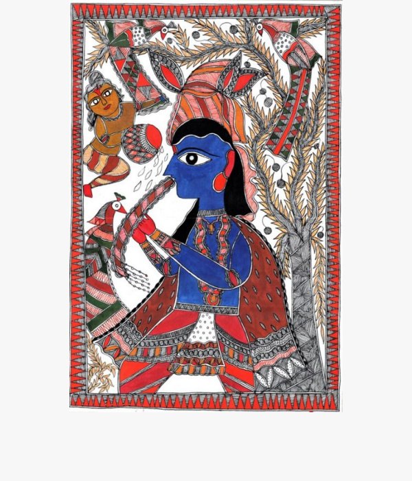 Madhubani painting by Nitu Sinha and Dolly Sinha - Krishna