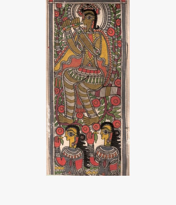 Madhubani painting by Nitu Sinha and Dolly Sinha - Krishna in Vatika