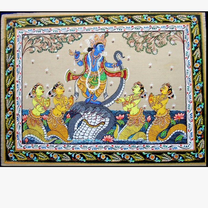 Patachitra by Priyanka Mishra - Krishna - Kalia Dalan - 12x16in on tussar silk