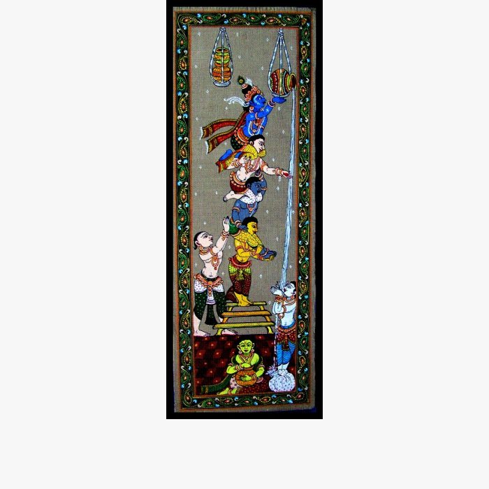 Patachitra by Priyanka Mishra - Krishna - Makhan Chor - 20x7in on tussar silk