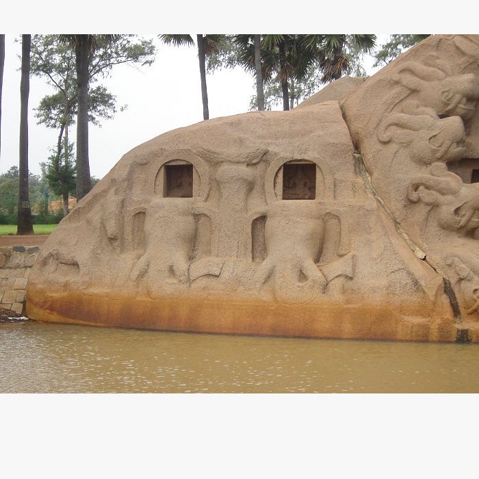 are also seen in the Dharmaraja mandapam (a cave temple) and Ganesha Ratham