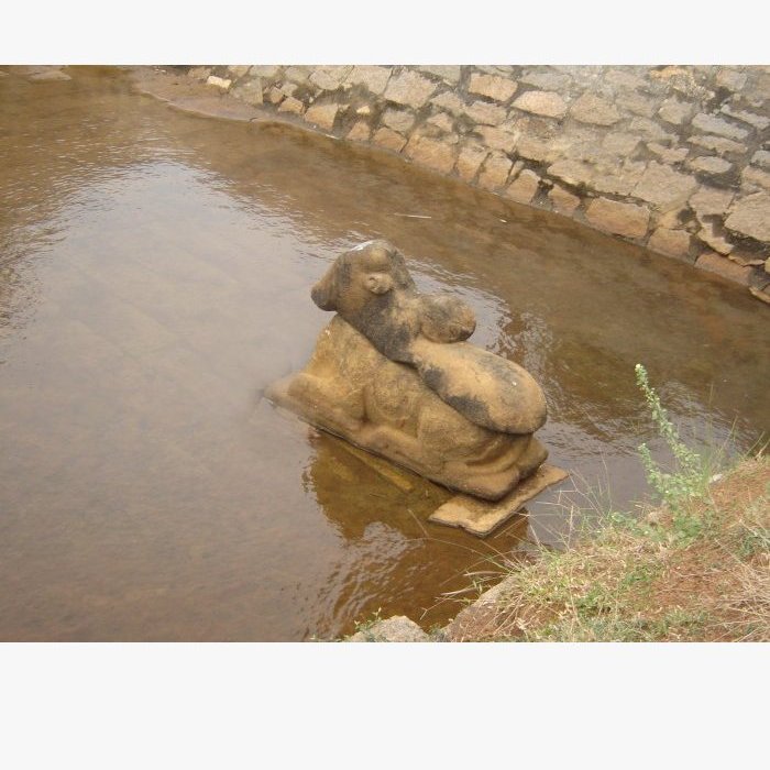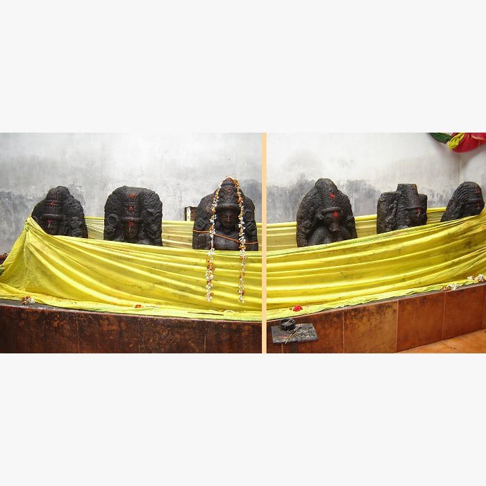 are in a straight line. To the left of the Nandi is a Mahishasuramardini