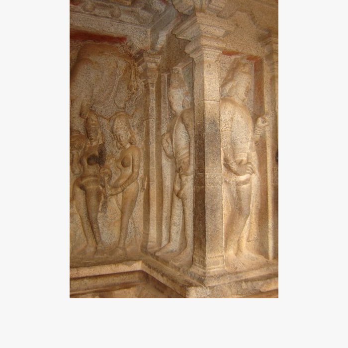 panel on the side wall and the Gajalakshmi panel on the facing wall.