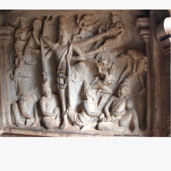On the right side are the Trivikrama panel on the side wall and the Durga