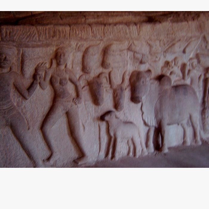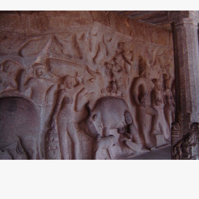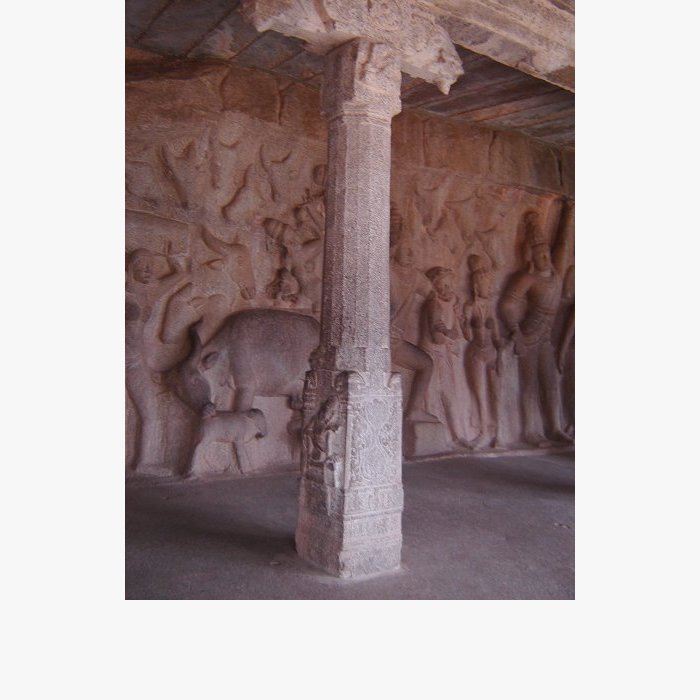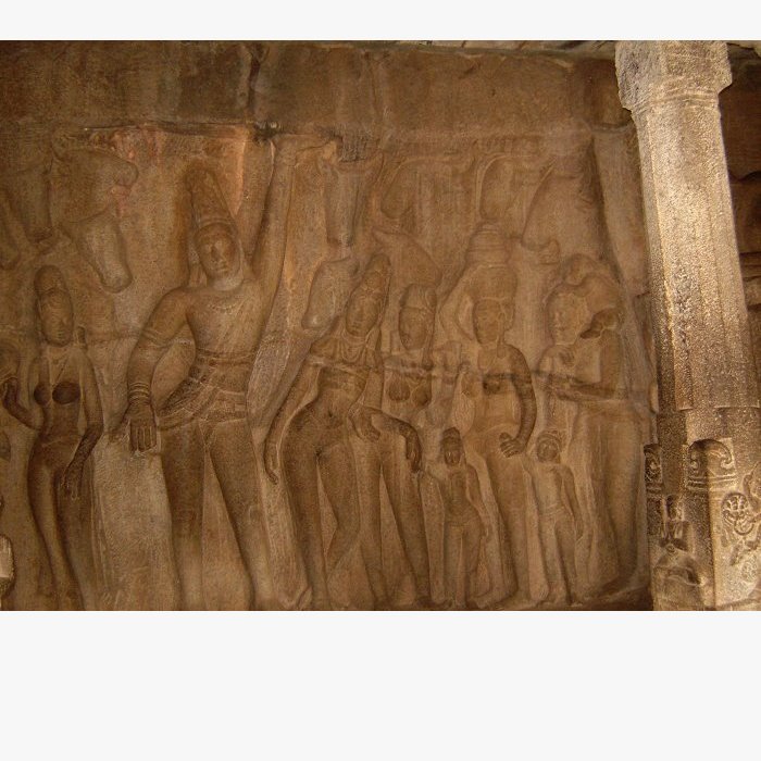 mandapam in Mahabalipuram, for all the figures sculpted in this cave reflect