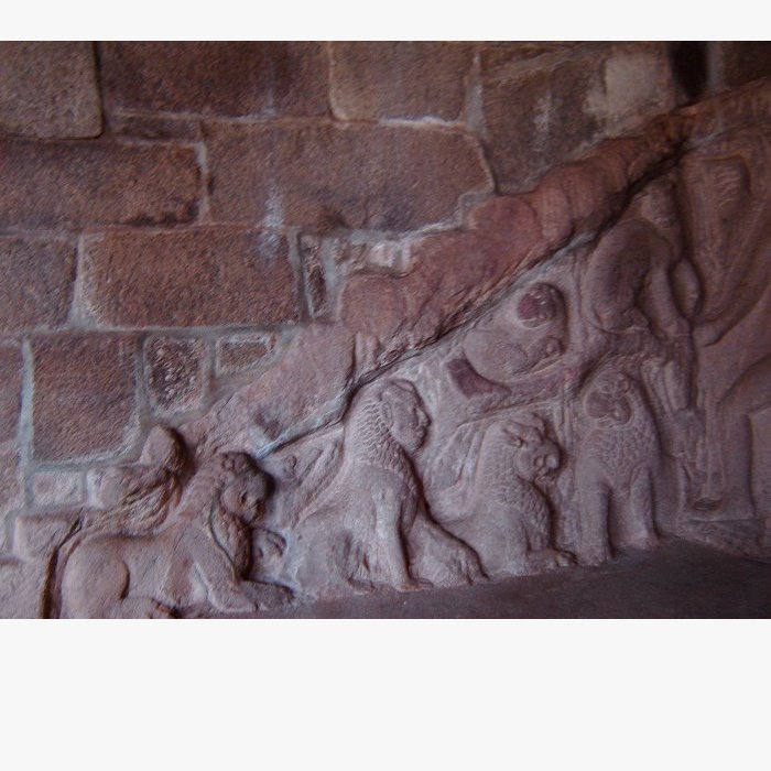 the social life of those days. Wild animals - a few lion and monkey sculptures