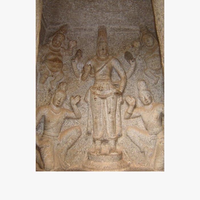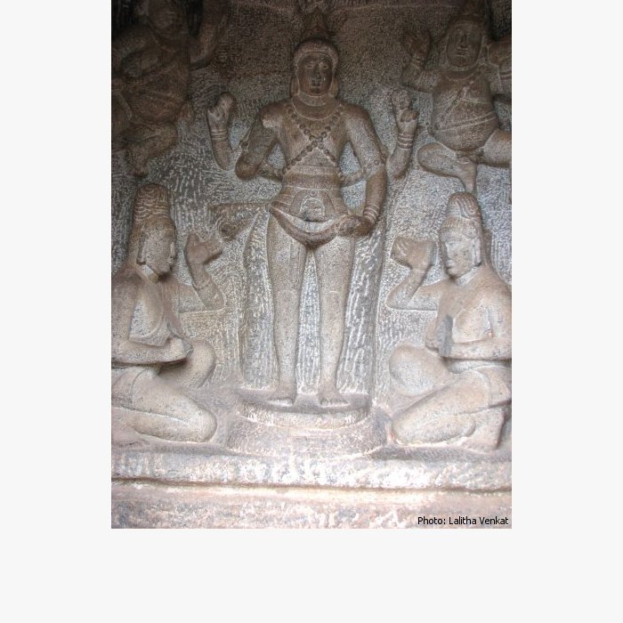 wall showing Siva, his two ganas and two devotees - two dwarapalakas at