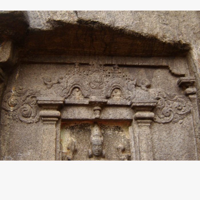 Slightly protruding Siva's shrine - a lingam is installed - two dwarapalakas at the entrance