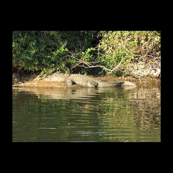 Local inhabitants like kingfishers and peacocks are also found. Crocodiles