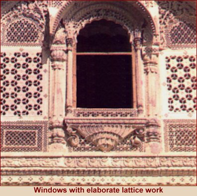 On either side of the narrow lanes in Jaisalmer, are the sandstone mansions (which are still occupied), with stone carvings, screen windows, delicate pavilions & balconies. The balconies jutting out from either side almost touch overhead. The most magnificent mansions are Patwon ki Haveli with its latticed facade, Salim Singh ki Haveli built 3000 years ago with beautiful arched roofs, Nathmalji ki Haveli, Mumal ki Mehri.