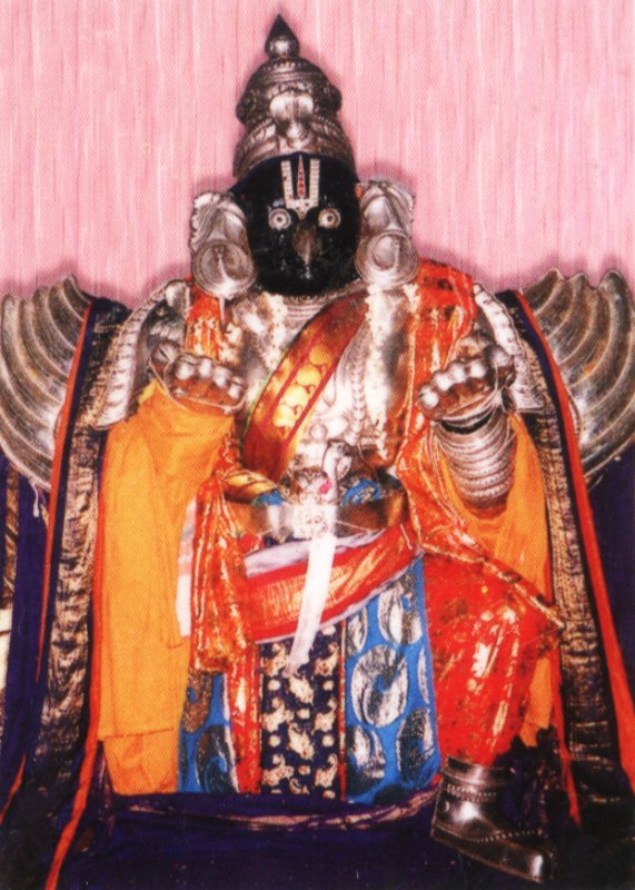 Shrine here is dedicated to Lord Srinivasa. A rare feature is, the Garuda