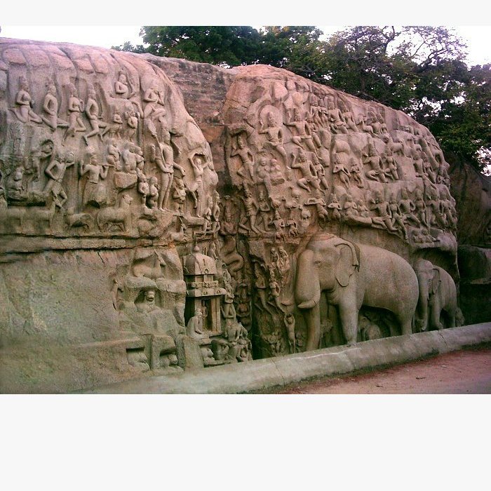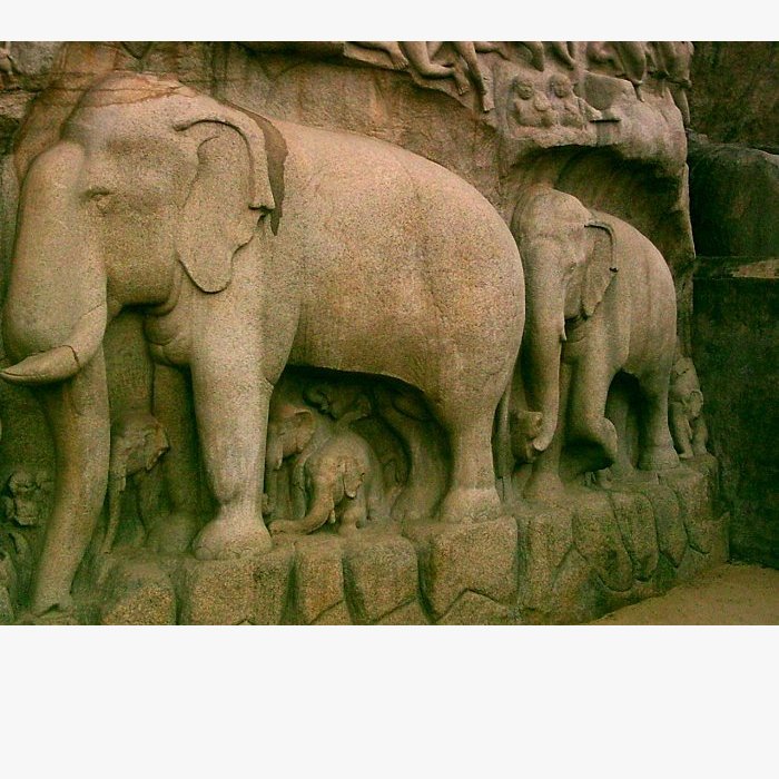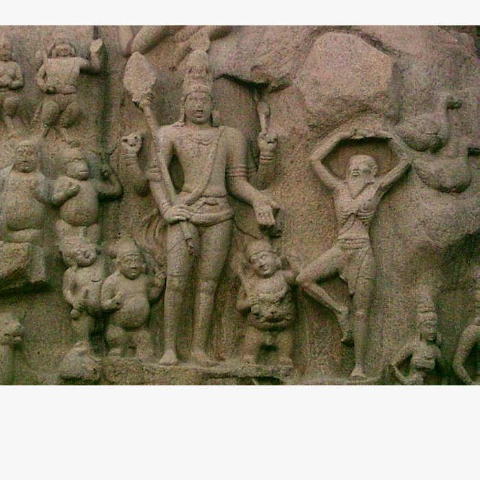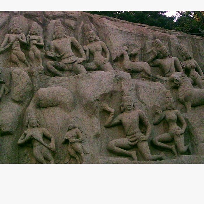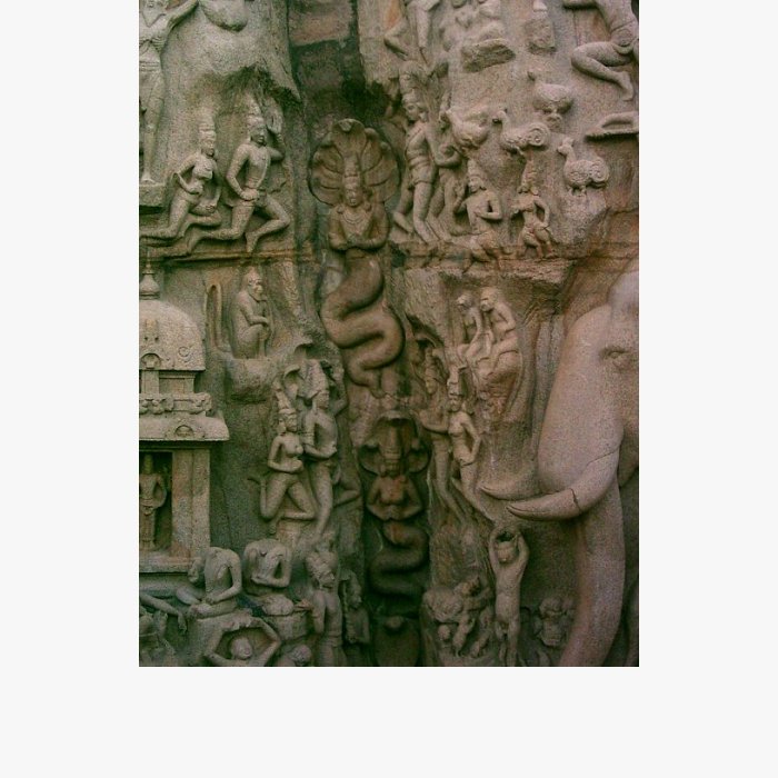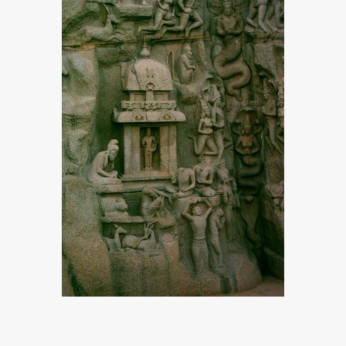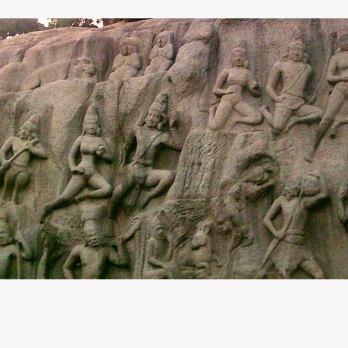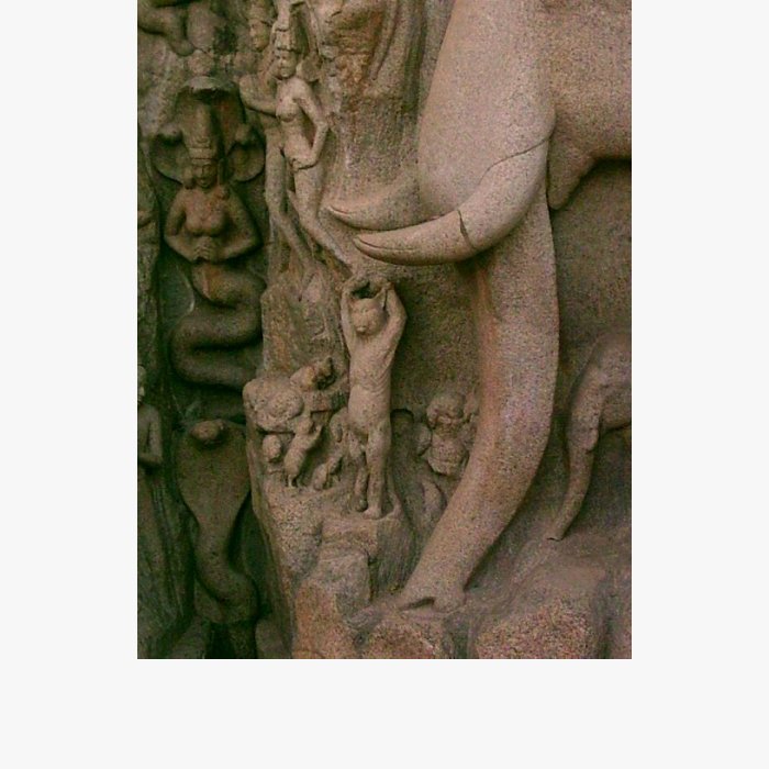 Sculptural details in the Bas relief Arjuna's Penance, Mahabalipuram