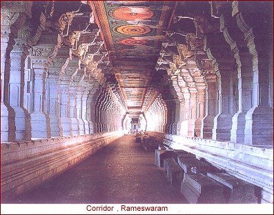 Rameswaram, a pilgrimage centre is an island town in the Palk strait at the South east tip of India, 167 kms from Madurai. The island is connected to the mainland by the Pamban bridge. No holy pilgrim is complete for the Hindus without a dip in the holy waters of the Agni Theertham at Rameswaram. This tranquil water was calmed by Lord Rama, who is said to have worshipped Lord Siva here, before and after his war with the Lankan asura king Ravana, who had abducted his wife Sita Devi. There are several holy threethams - a total of 51 teerthams in Rameswaram.