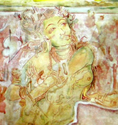 before. The painting shows bhavya-s diverting themselves in a pool, full