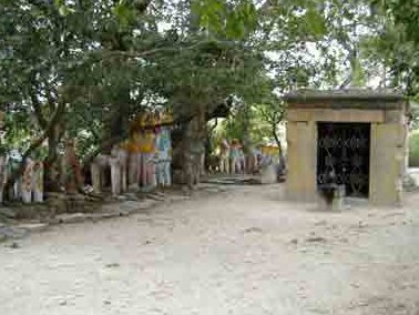 deity, Ayyanar with the customary terracotta sculptures of horses, etc.