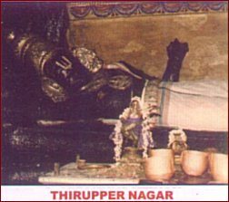 west. He is seen holding an Appa Kudam in his right hand, blessing