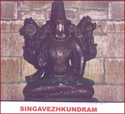Lakshmi Narasimhan seen in seated posture facing east. The utsavar