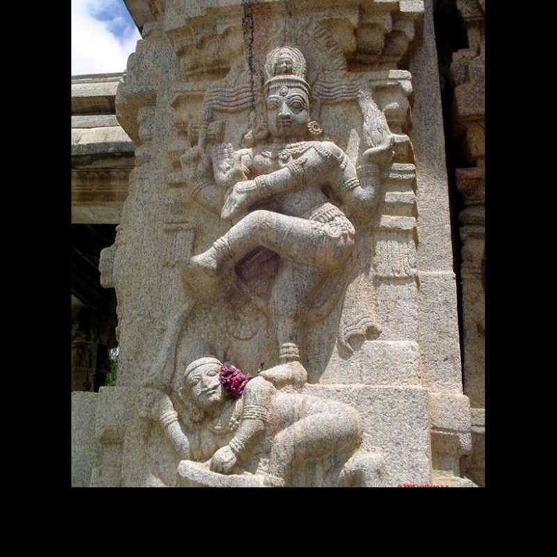 peedam is an imposing structure. He is seen holding the changu, chakram,