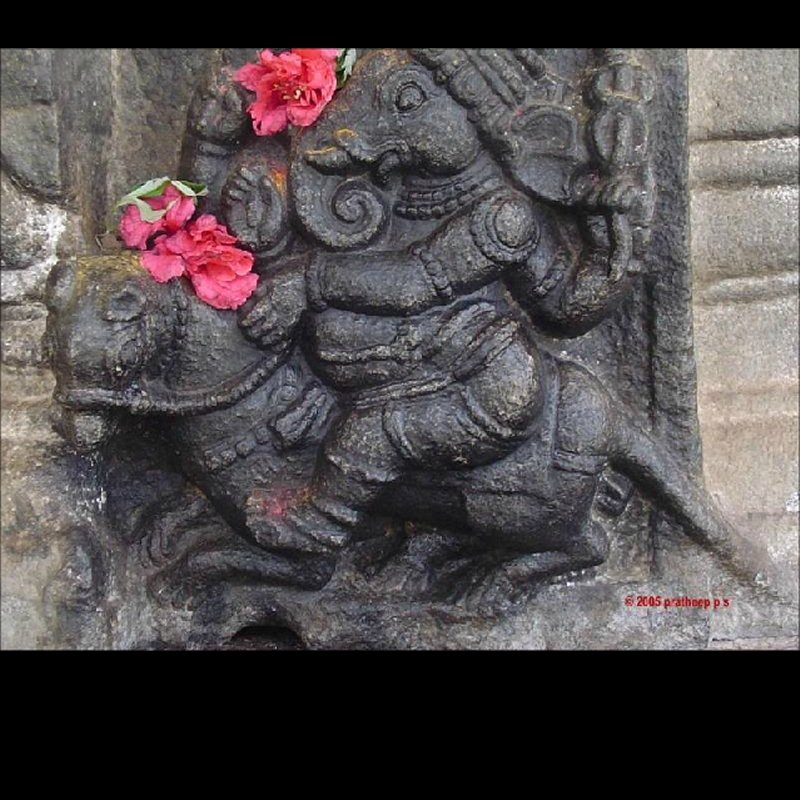 the entrance of the Vaidyanatha temple, a Ganesha idol on his munjur